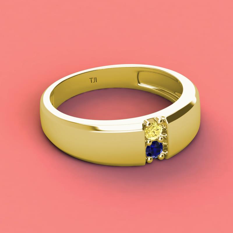 Round Yellow Sapphire and Blue Sapphire 0.28 ctw High Polished 2 Stone Men Wedding Band 10K Yellow Gold More Details ...