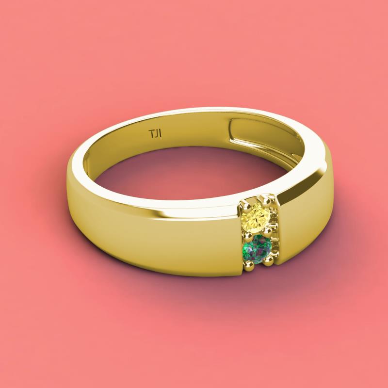 Round Yellow Sapphire and Lab Created Alexandrite 0.29 ctw High Polished 2 Stone Men Wedding Band 10K Yellow Gold More Details ...
