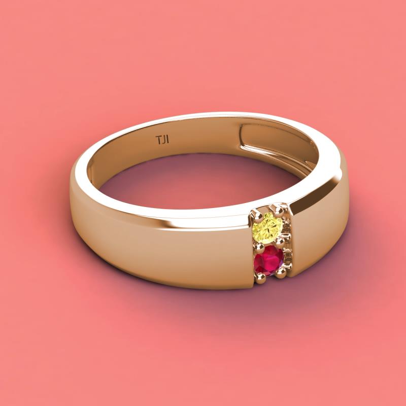 Round Yellow Sapphire and Ruby 0.28 ctw High Polished 2 Stone Men Wedding Band 10K Rose Gold More Details ...