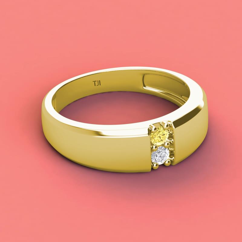 Round Yellow Sapphire and White Sapphire 0.34 ctw High Polished 2 Stone Men Wedding Band 18K Yellow Gold More Details ...