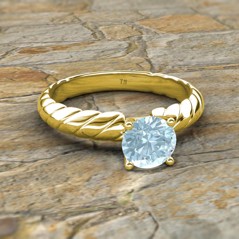 Round Aquamarine 0.87 ct Womens Solitaire Rope Engagement Ring 18K Yellow Gold More Details ...