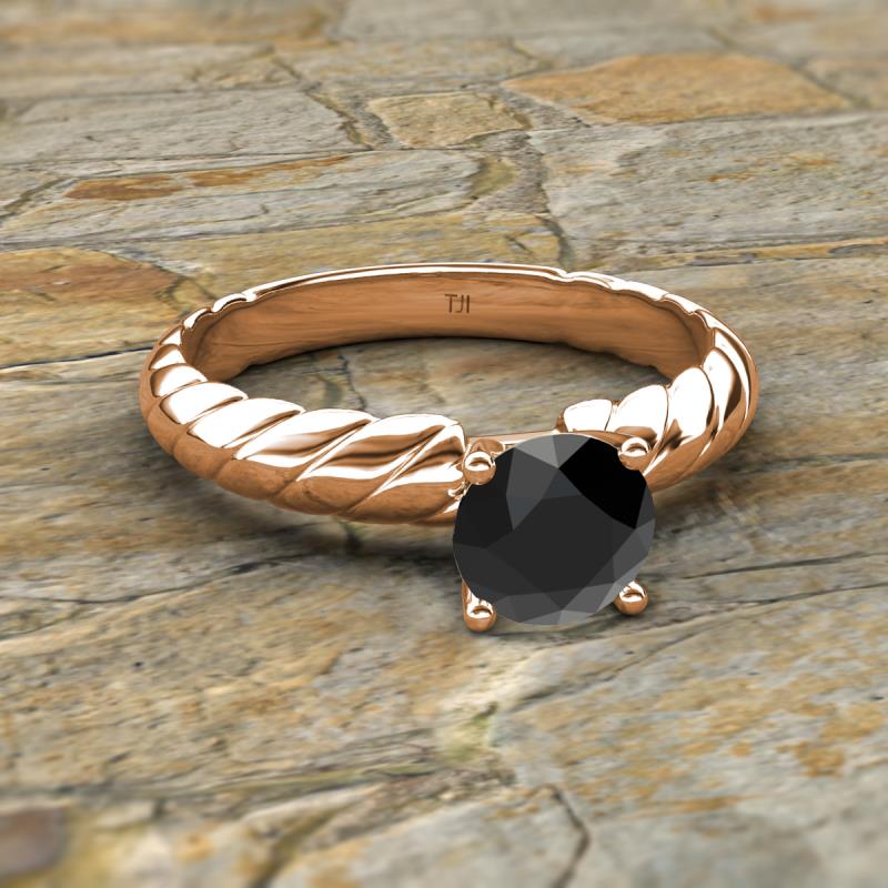 Round Black Diamond 1.00 ct Womens Solitaire Rope Engagement Ring 18K Rose Gold More Details ...