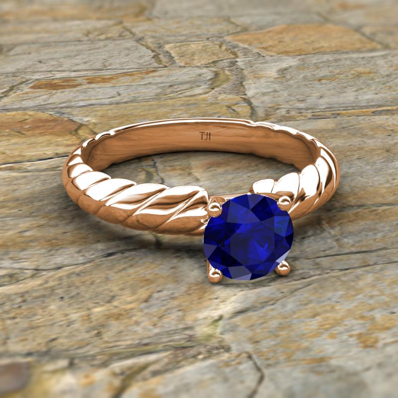 Round Blue Sapphire 0.96 ct Womens Solitaire Rope Engagement Ring 14K Rose Gold More Details ...