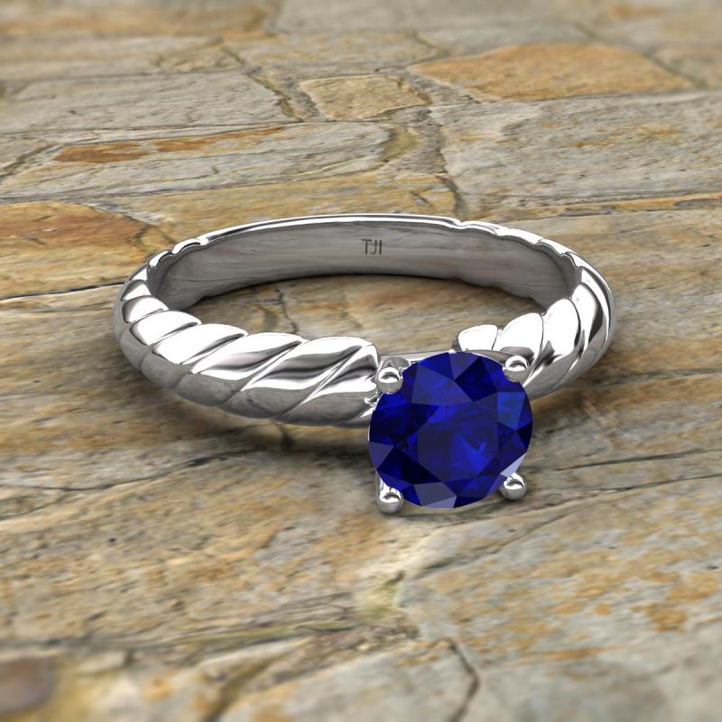 Round Blue Sapphire 0.96 ct Womens Solitaire Rope Engagement Ring Platinum More Details ...