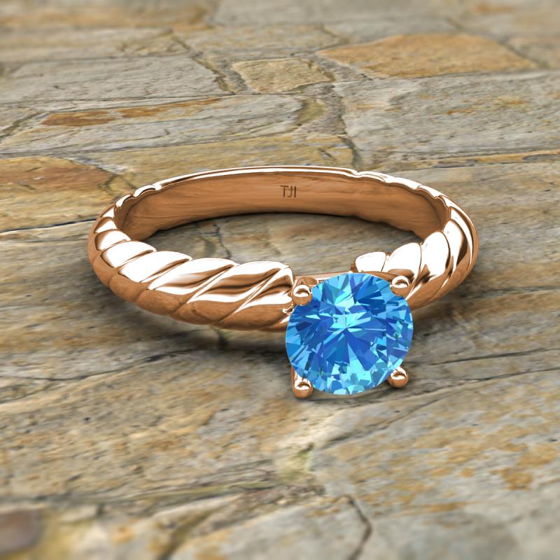 Round Blue Topaz 0.95 ct Womens Solitaire Rope Engagement Ring 18K Rose Gold More Details ...