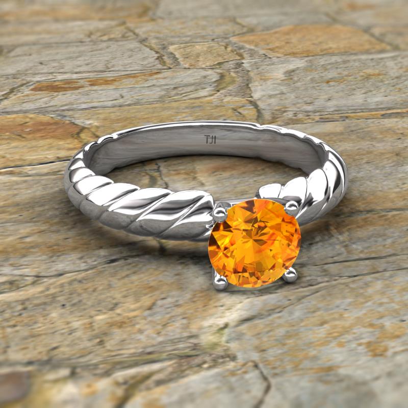 This Elegant Solitaire Engagement Ring in 18K White Gold features a Shank wrapping around the Center Citrine with Twisted Rope design on the Band which Symbolize your endless Love for each other.