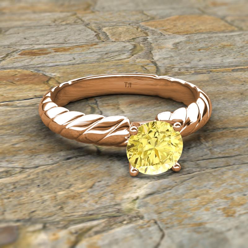 Round Lab Created Yellow Sapphire 0.95 ct Womens Solitaire Rope Engagement Ring 18K Rose Gold More Details ...