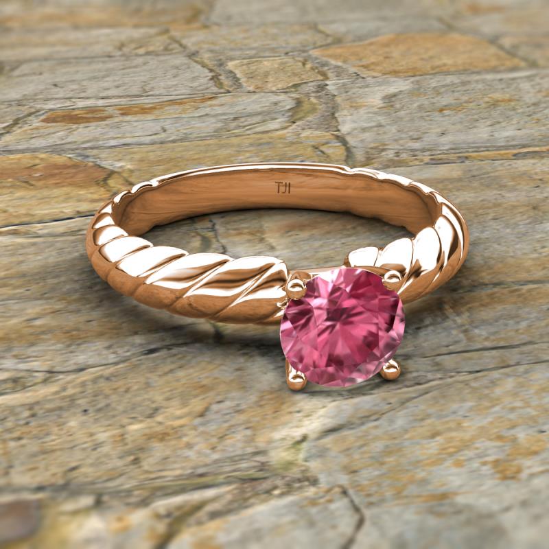 Round Pink Tourmaline 0.87 ct Womens Solitaire Rope Engagement Ring 14K Rose Gold More Details ...