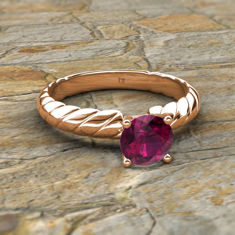 Round Rhodolite Garnet 1.00 ct Womens Solitaire Rope Engagement Ring 18K Rose Gold More Details ...