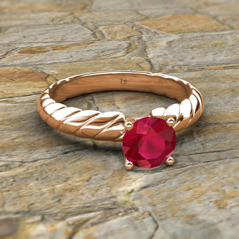 Round Ruby 0.95 ct Womens Solitaire Rope Engagement Ring 14K Rose Gold More Details ...