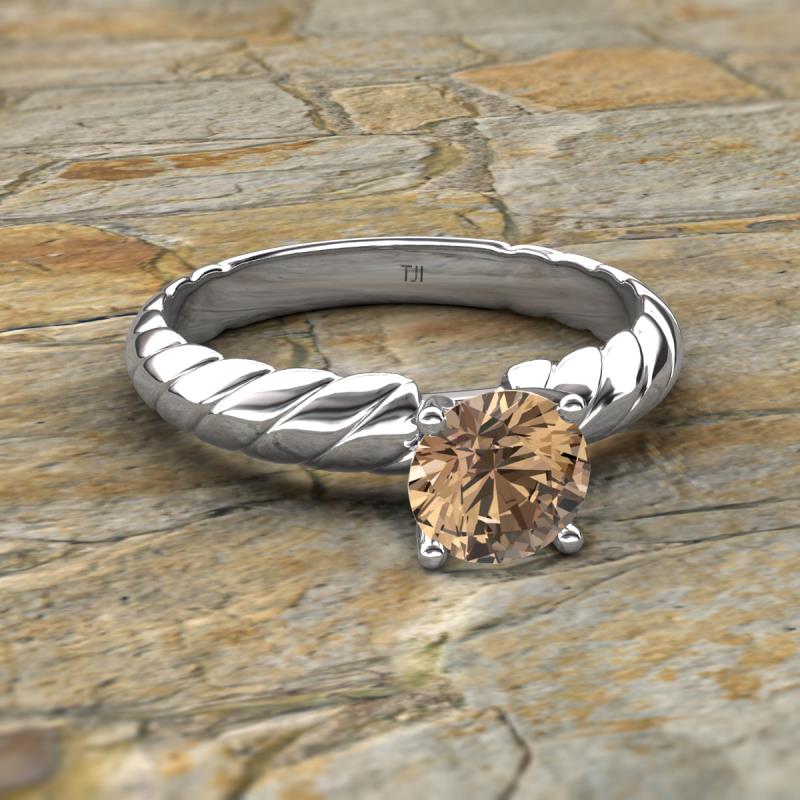 Round Smoky Quartz 1.00 ct Womens Solitaire Rope Engagement Ring Platinum More Details ...