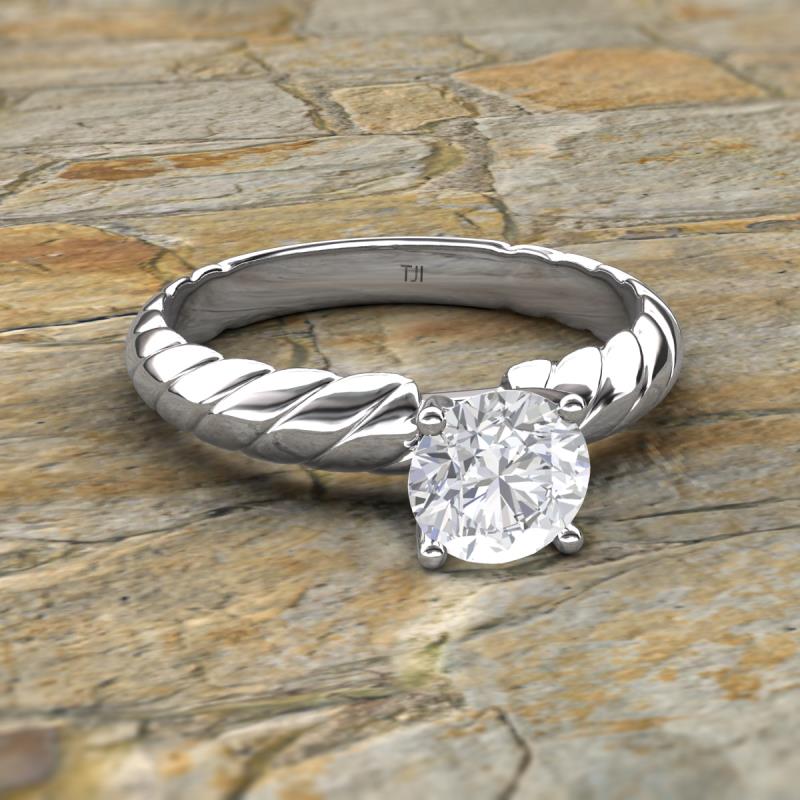 Round White Sapphire 0.95 ct Womens Solitaire Rope Engagement Ring 14K White Gold More Details ...