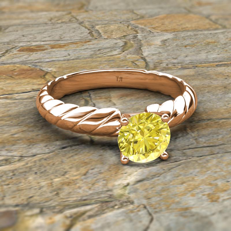 Round Yellow Diamond 0.80 ct Womens Solitaire Rope Engagement Ring 14K Rose Gold More Details ...