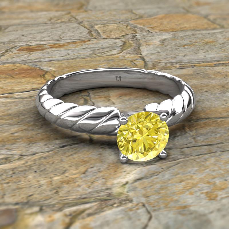Round Yellow Diamond 0.80 ct Womens Solitaire Rope Engagement Ring Platinum More Details ...