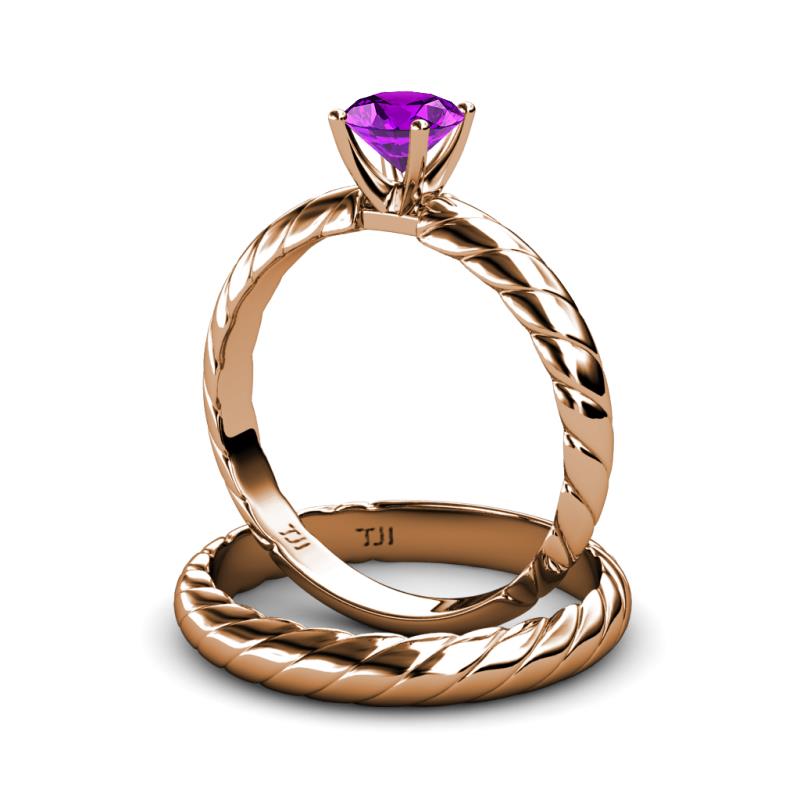 0.87 ct Classic Amethyst Rope Solitaire Engagement Ring & Wedding Band set in 18K Rose Gold . More Details ...