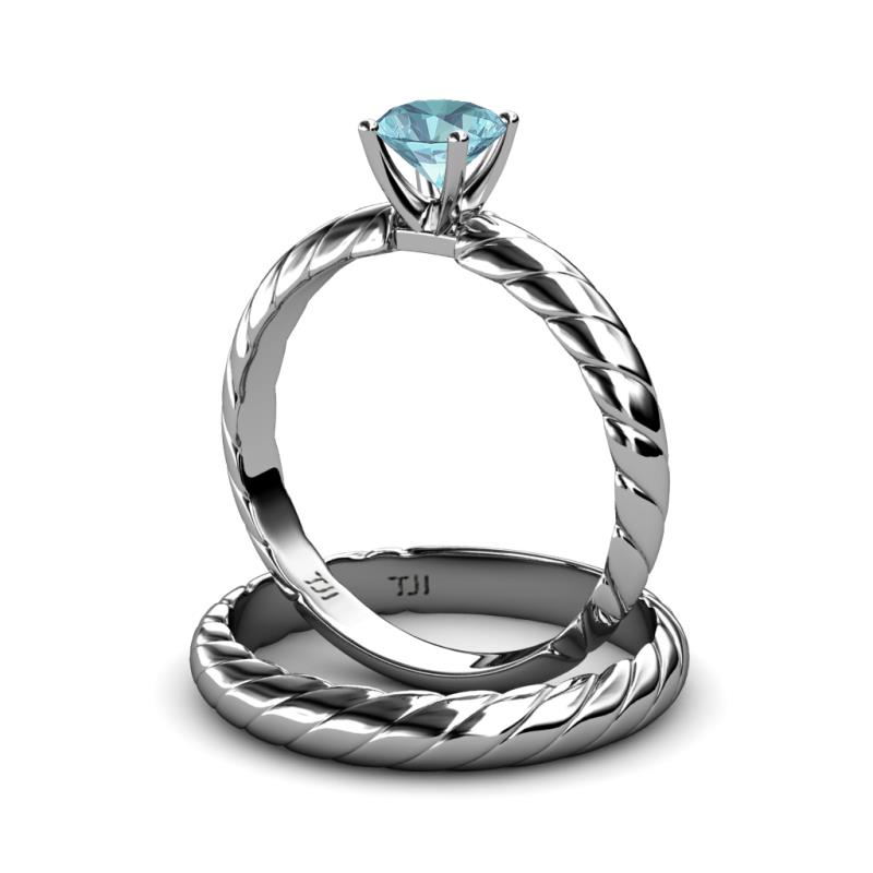 0.87 ct Classic Aquamarine Rope Solitaire Engagement Ring & Wedding Band set in 18K White Gold . More Details ...