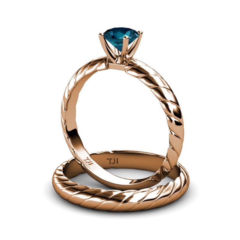 1.00 ct Classic Blue Diamond Rope Solitaire Engagement Ring & Wedding Band set in 18K Rose Gold . More Details ...