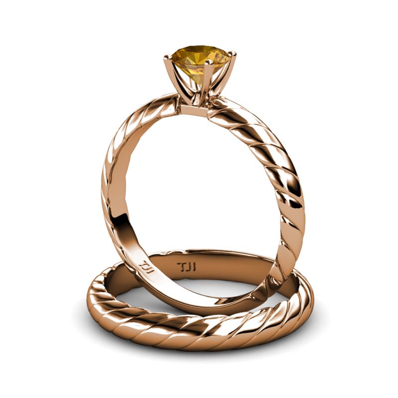 0.87 ct Classic Citrine Rope Solitaire Engagement Ring & Wedding Band set in 18K Rose Gold . More Details ...