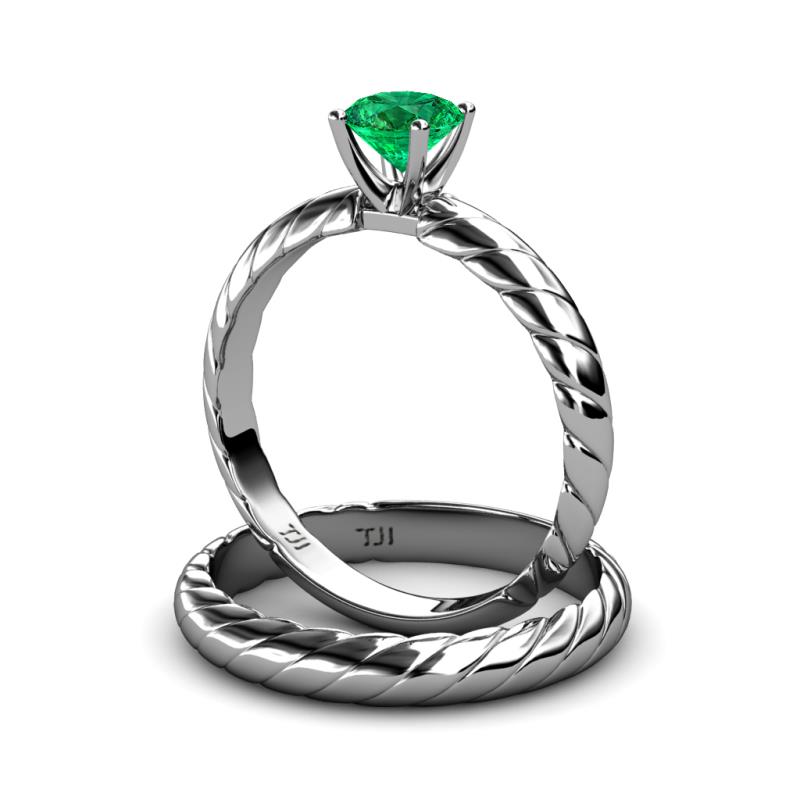 This Elegant Solitaire Engagement Ring features a Shank wrapping around the Center Emerald with Twisted Rope design along with matching Wedding Band which Symbolize your endless Love for each other.