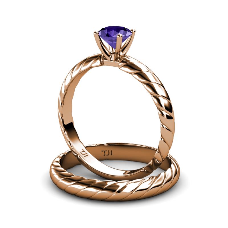 0.80 ct Classic Iolite Rope Solitaire Engagement Ring & Wedding Band set in 14K Rose Gold . More Details ...