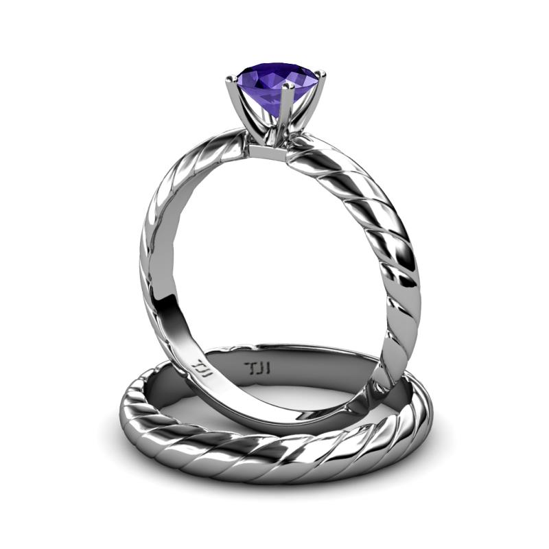 0.80 ct Classic Iolite Rope Solitaire Engagement Ring & Wedding Band set in 18K White Gold . More Details ...