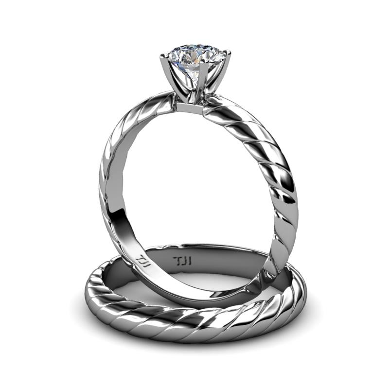 1.00 ct Classic Moissanite Rope Solitaire Engagement Ring & Wedding Band set in 18K White Gold . More Details ...
