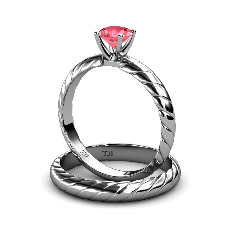 0.87 ct Classic Pink Tourmaline Rope Solitaire Engagement Ring & Wedding Band set in 18K White Gold . More Details ...