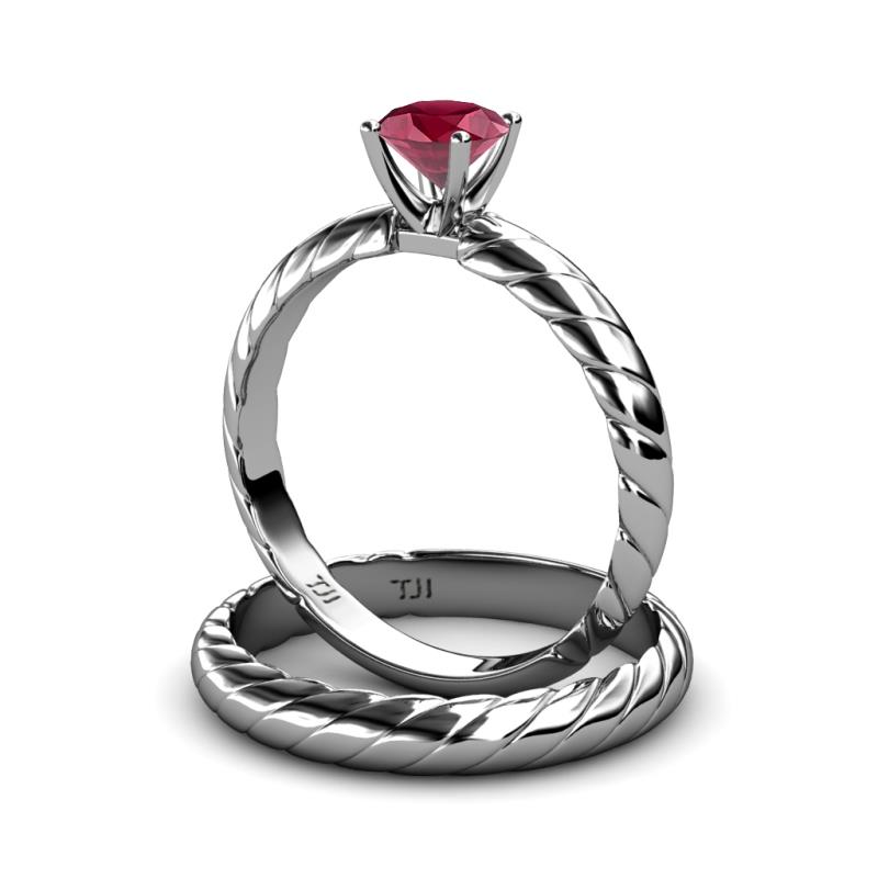 1.00 ct Classic Rhodolite Garnet Rope Solitaire Engagement Ring & Wedding Band set in 18K White Gold . More Details ...