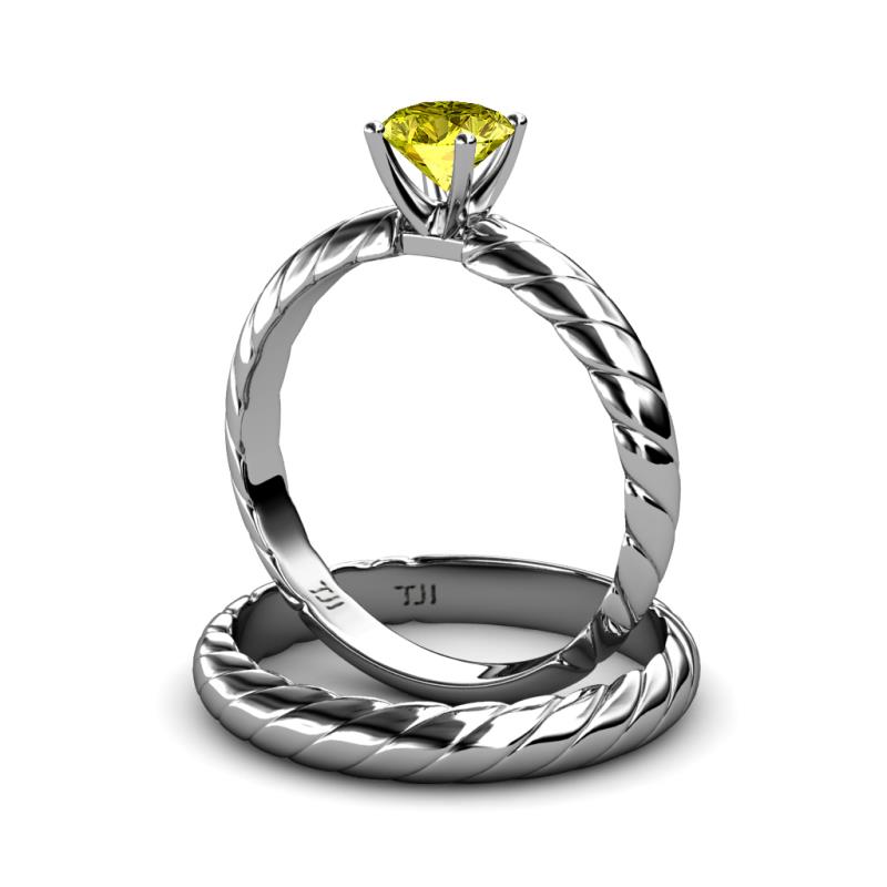 This Elegant Solitaire Engagement Ring features a Shank wrapping around the Center Yellow Diamond with Twisted Rope design along with matching Wedding Band which Symbolize your endless Love for each other.