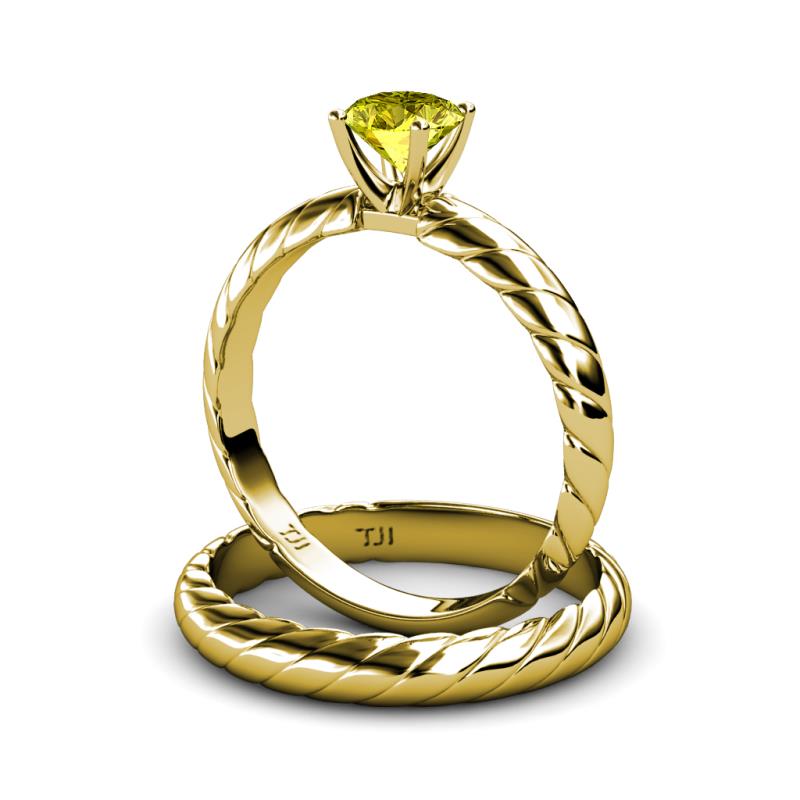 This Elegant Solitaire Engagement Ring features a Shank wrapping around the Center Yellow Diamond with Twisted Rope design along with matching Wedding Band which Symbolize your endless Love for each other.