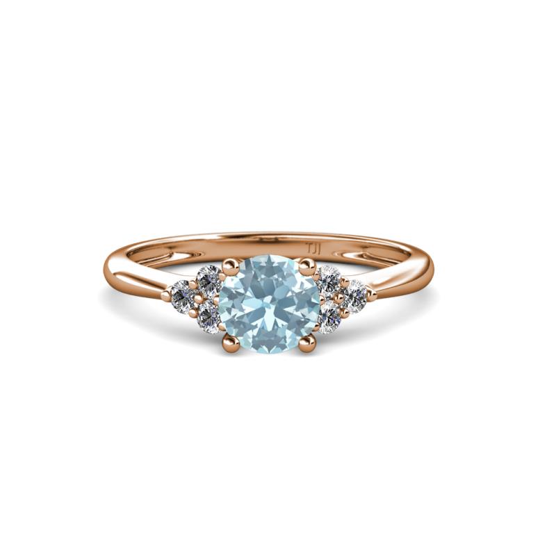 Aquamarine Solitaire with Side Diamond 1 1/10 ctw Womens Engagement Ring 14K Rose Gold More Details ...