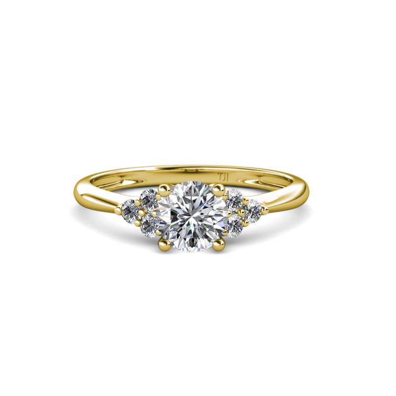 This 7 Stone Cluster Engagement Ring has 4 Prong set Round Center Diamond with Side Diamonds set in triple Pave setting on shoulders of plain Shank makes it a truly sparkling Accessory.
