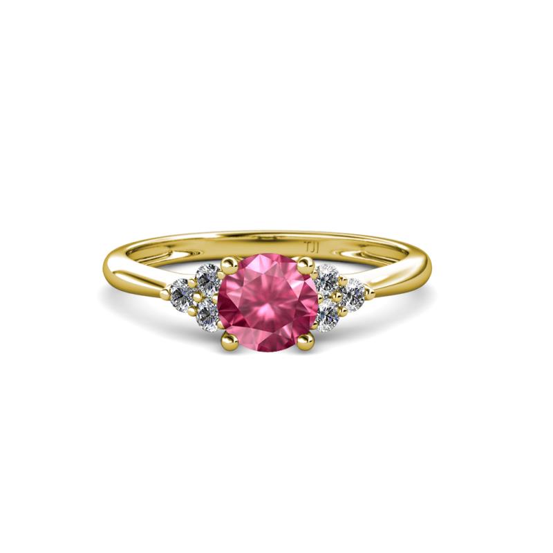 Pink Tourmaline Solitaire with Side Diamond 1 1/10 ctw Womens Engagement Ring 18K Yellow Gold More Details ...