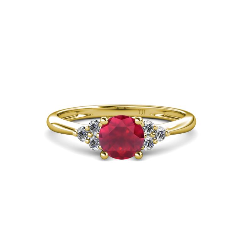 Ruby Solitaire with Side Diamond 1 1/5 ctw Womens Engagement Ring 14K Yellow Gold More Details ...