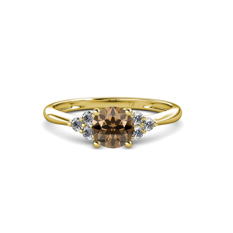 Smoky Quartz Solitaire with Side Diamond 1 1/4 ctw Womens Engagement Ring 18K Yellow Gold More Details ...