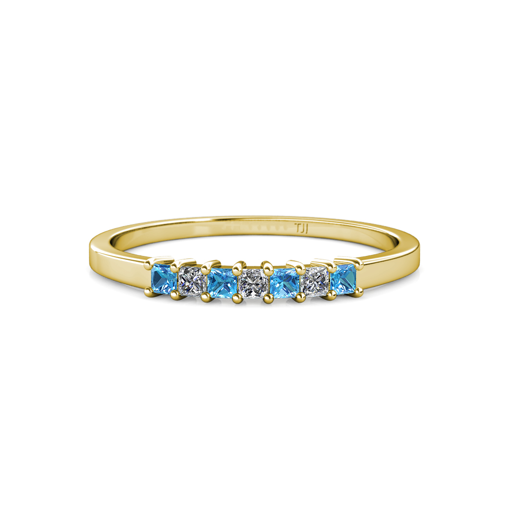 This is a Gorgeous 0.40 ctw 7 Stone Wedding Band have Series of Glittering Princess Cut Blue Topaz and Natural Diamond that will make your Wedding Vow Special & Memorable.