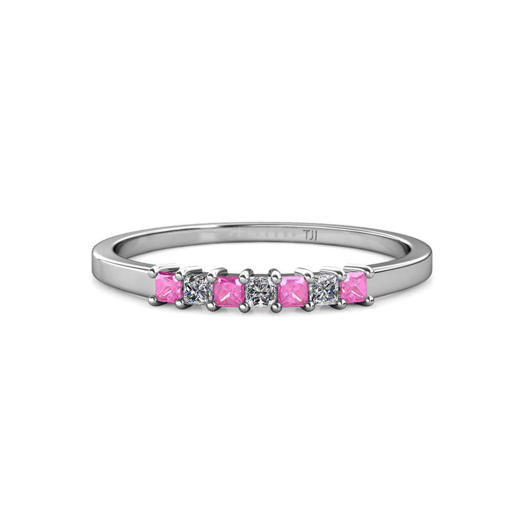 This is a Gorgeous 0.40 ctw 7 Stone Wedding Band have Series of Glittering Princess Cut Pink Sapphire and Natural Diamond that will make your Wedding Vow Special & Memorable.