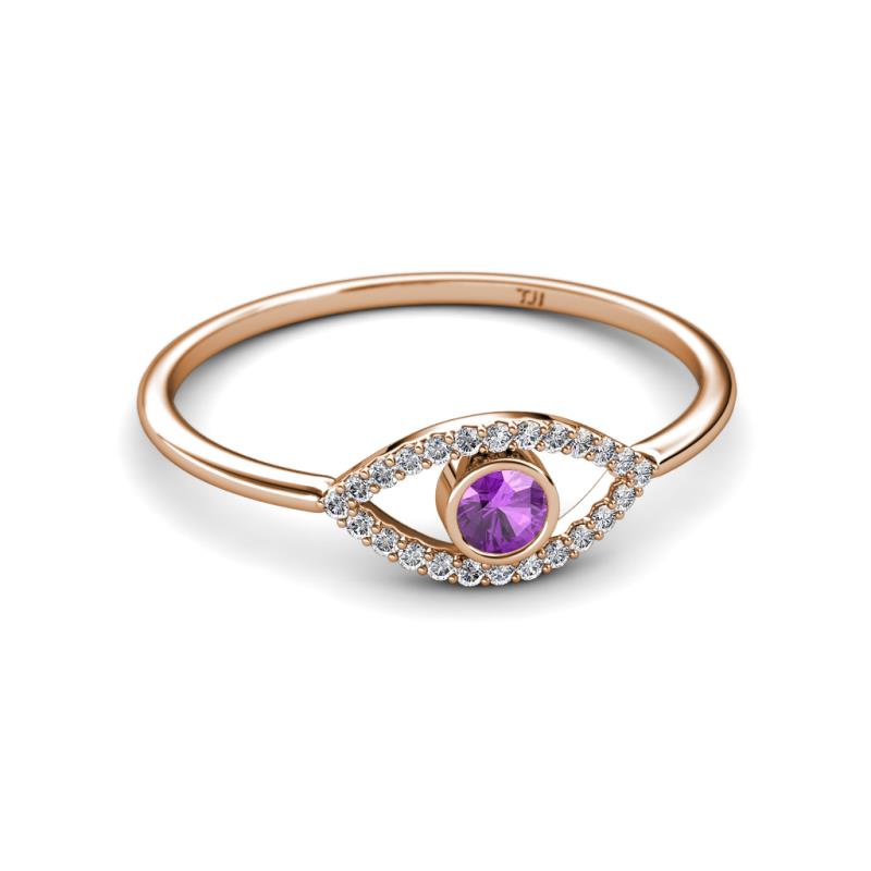 Round Amethyst and Diamond Womens Evil Eye Promise Ring 0.32 ctw 18K Rose Gold More Details ...