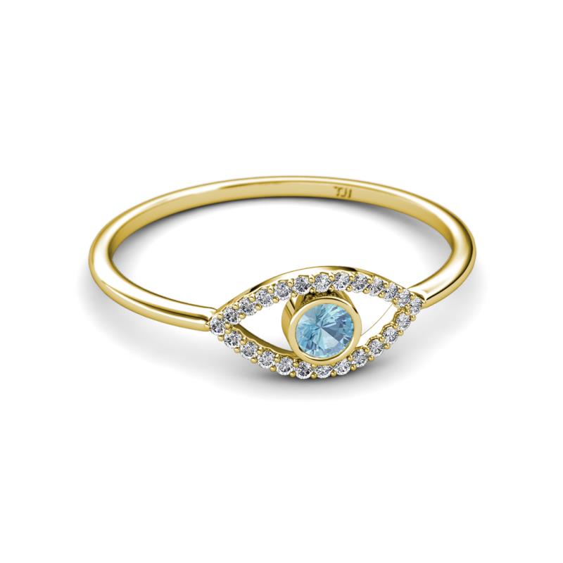 Round Aquamarine and Diamond Womens Evil Eye Promise Ring 0.32 ctw 14K Yellow Gold More Details ...