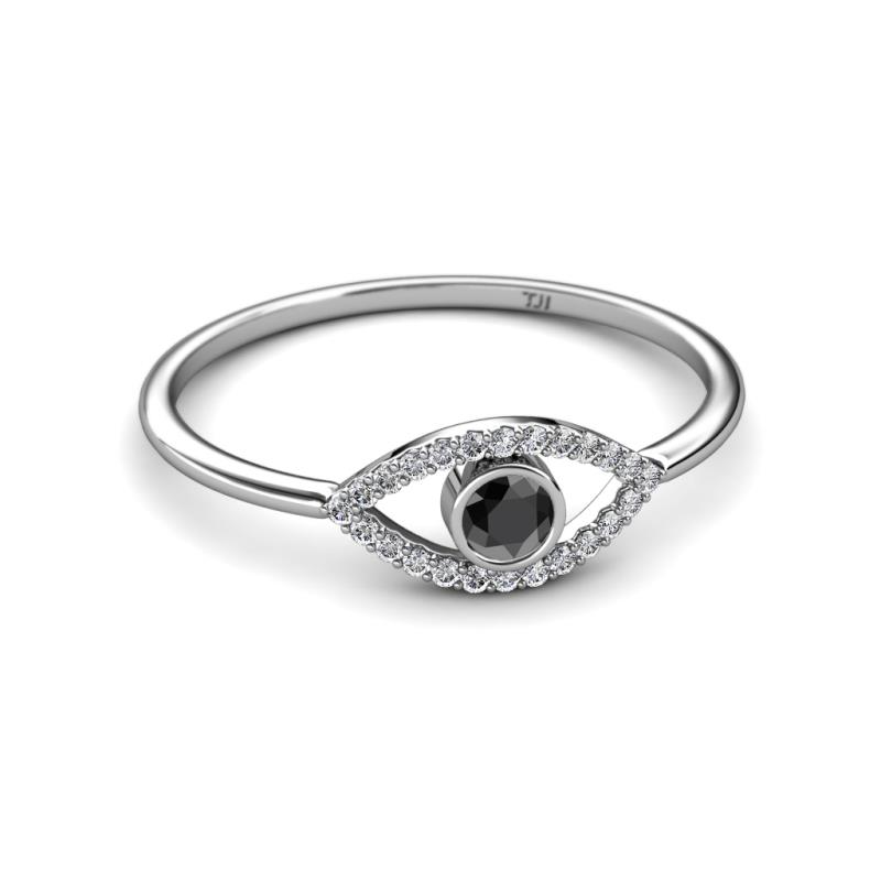 Round Black and White Diamond Womens Evil Eye Promise Ring 0.34 ctw Platinum More Details ...