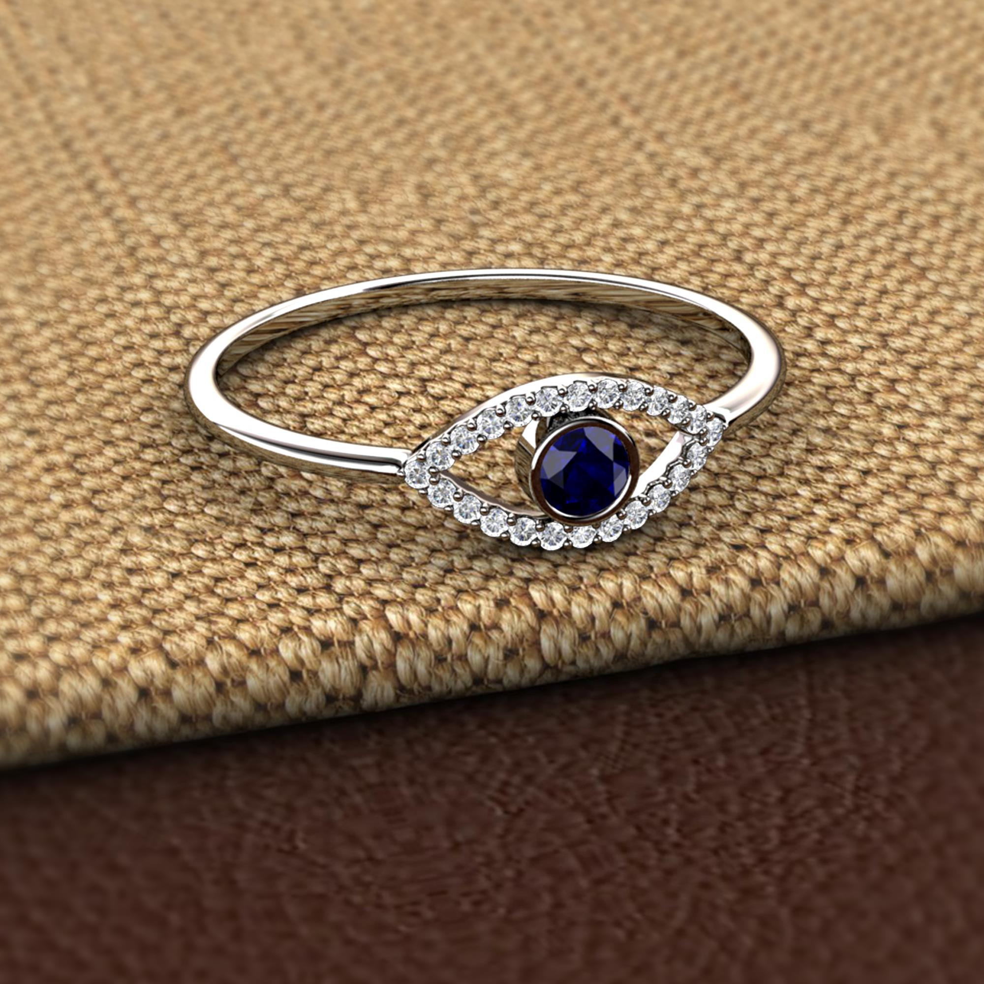 Round Blue Sapphire and Diamond Womens Evil Eye Promise Ring 0.34 ctw Sterling Silver More Details ...