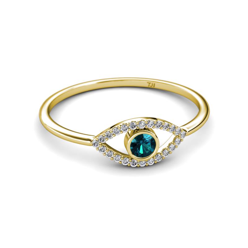Round Blue and White Diamond Womens Evil Eye Promise Ring 0.33 ctw 14K Yellow Gold More Details ...