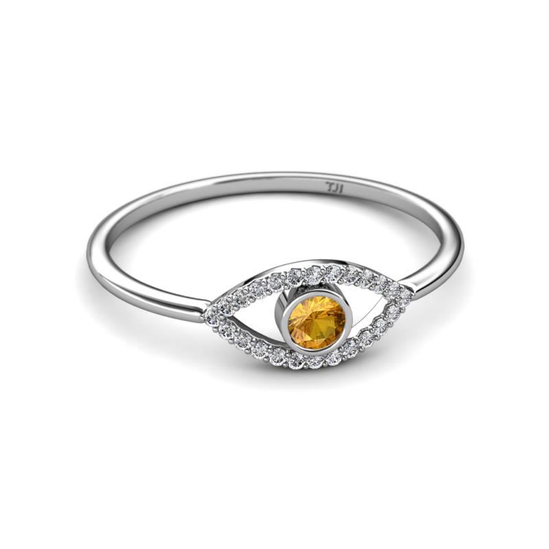 Round Citrine and Diamond Womens Evil Eye Promise Ring 0.32 ctw 18K White Gold More Details ...