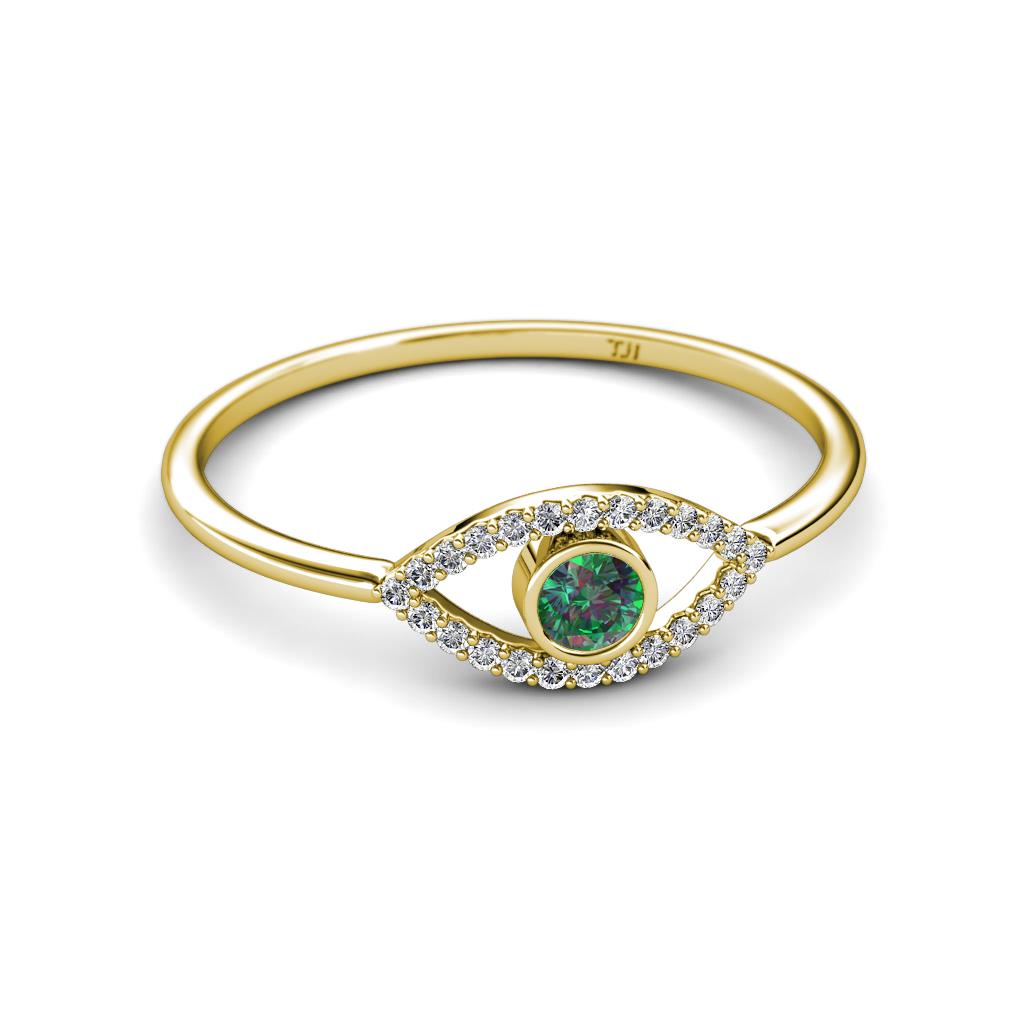 Round Diamond and Lab Created Alexandrite Womens Evil Eye Promise Ring 0.35 ctw 18K Yellow Gold More Details ...