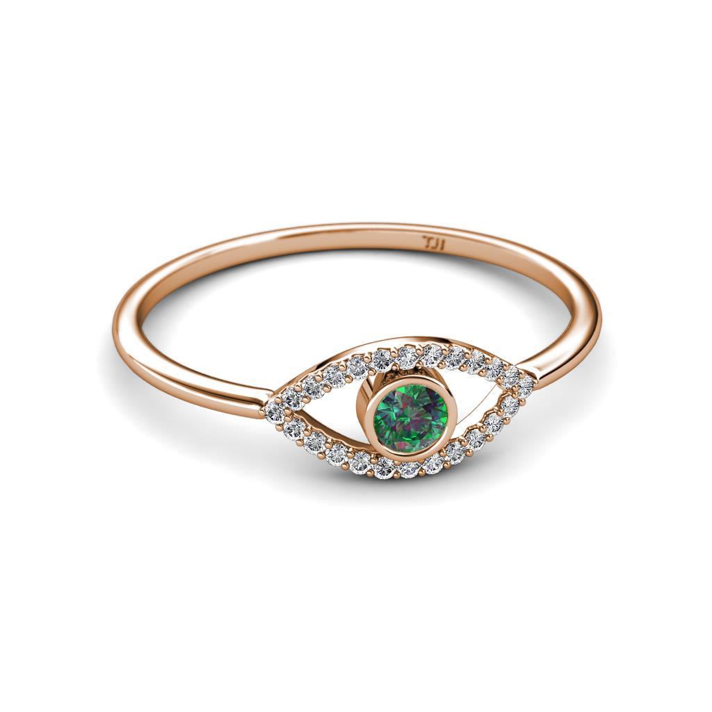 Round Diamond and Lab Created Alexandrite Womens Evil Eye Promise Ring 0.35 ctw 18K Rose Gold More Details ...