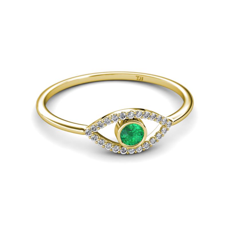 Round Emerald and Diamond Womens Evil Eye Promise Ring 0.32 ctw 14K Yellow Gold More Details ...