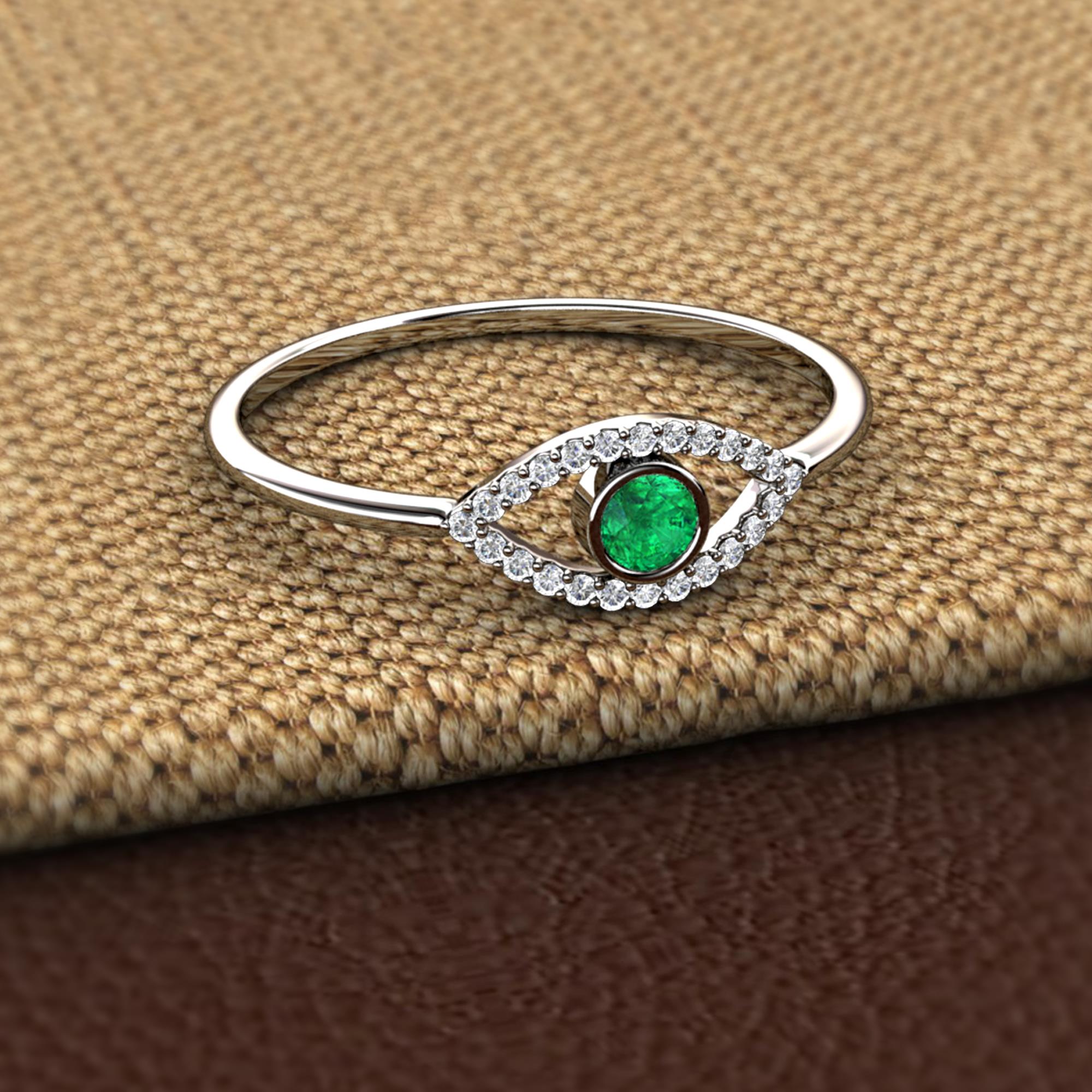 Round Emerald and Diamond Womens Evil Eye Promise Ring 0.32 ctw 18K White Gold More Details ...
