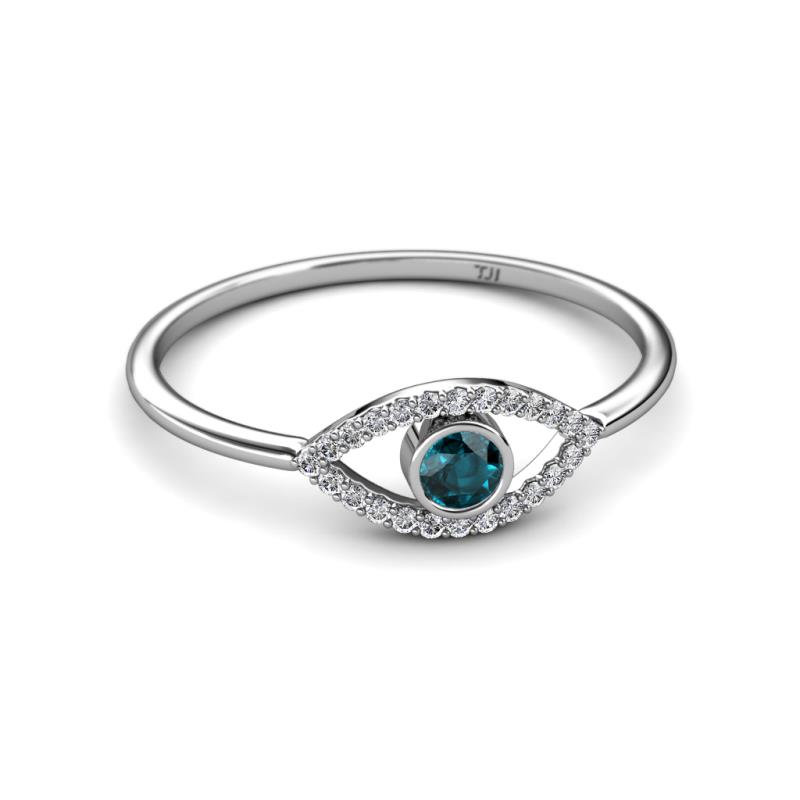 Round London Blue Topaz and Diamond Womens Evil Eye Promise Ring 0.34 ctw 14K White Gold More Details ...