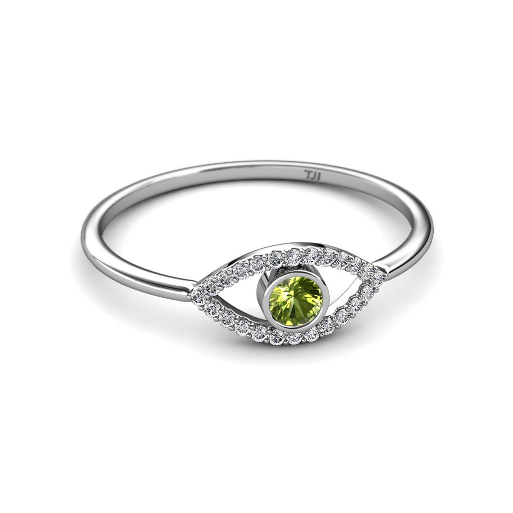Round Peridot and Diamond Womens Evil Eye Promise Ring 0.35 ctw 14K White Gold More Details ...