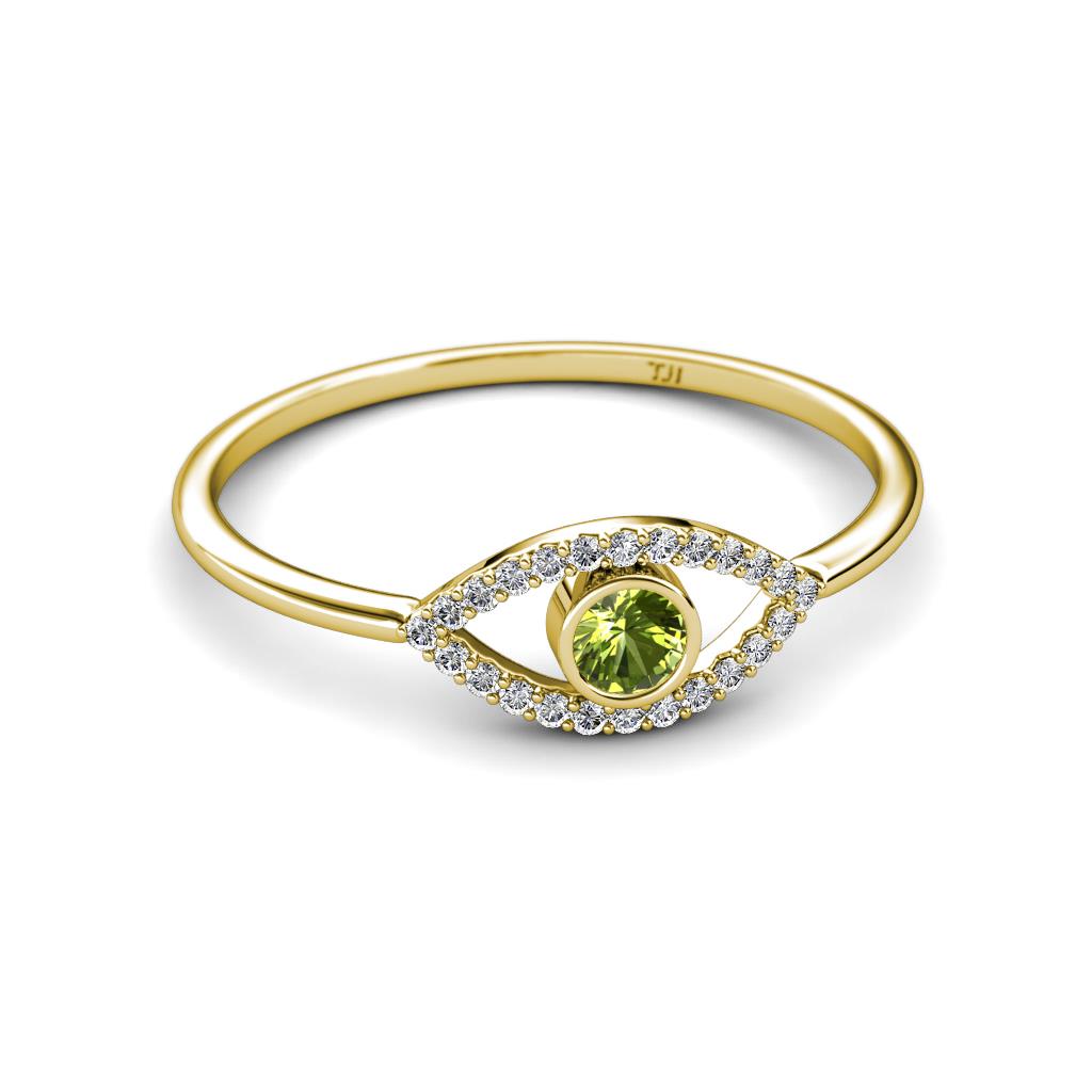 Round Peridot and Diamond Womens Evil Eye Promise Ring 0.35 ctw 14K Yellow Gold More Details ...